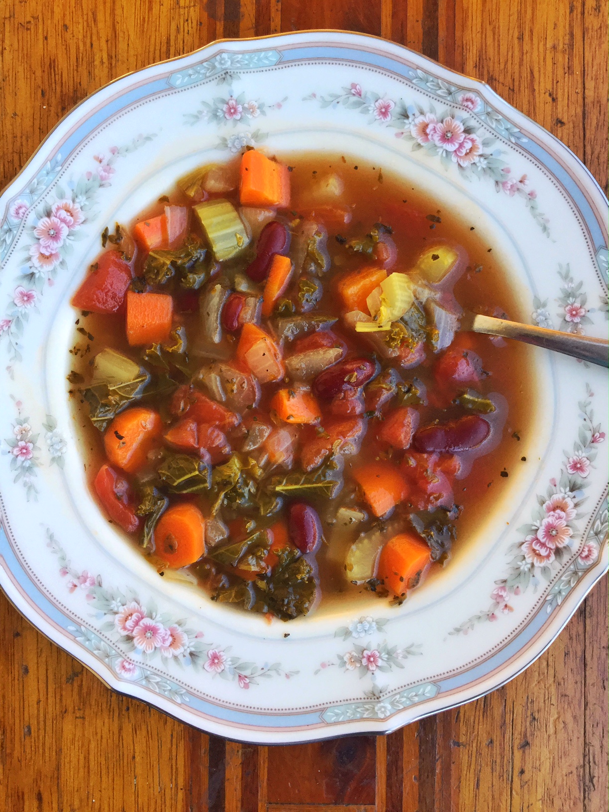 The recipe we ended up with is far different than the one I made years ago—it’s healthier, heartier and even more delicious! Most of the vegetables I use in the soup are grown in my own garden and used in season, thus the name, Garden Minestrone.