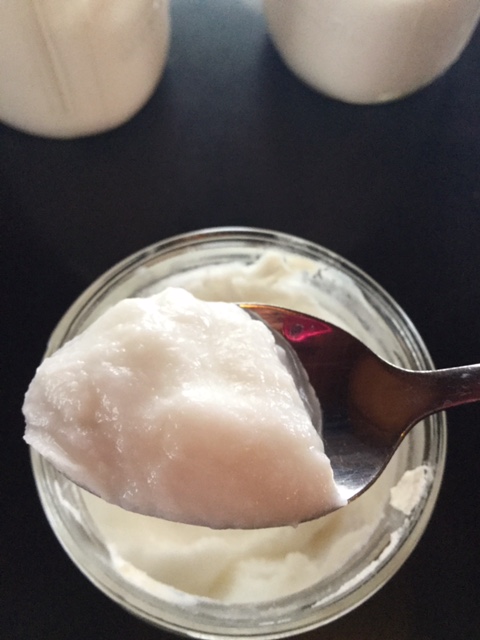 The yogurt made with canned coconut cream was creamy and delicious but not the normal texture of yogurt. It was definitely more of a cream consistency and it reminded me a lot of Cool Whip. Also, it is higher in fat and calories than regular, full fat coconut milk.